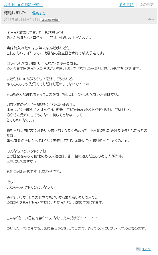 もるにゅのオンラインゲームの日記がメインでした。 現在も極低頻度ながらまったりと更新中。
